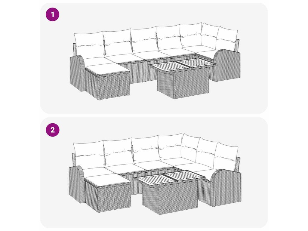 - Ekologický polyratan: Set je vyroben z polyratanu s moderní tkanou strukturou. Je odolný vůči povětrnostním vlivům, zvlášť UV paprskům, takže tvůj venkovní nábytek vypadá pořád jako nový. A ještě je super lehký, takže se snadno přesouvá.
