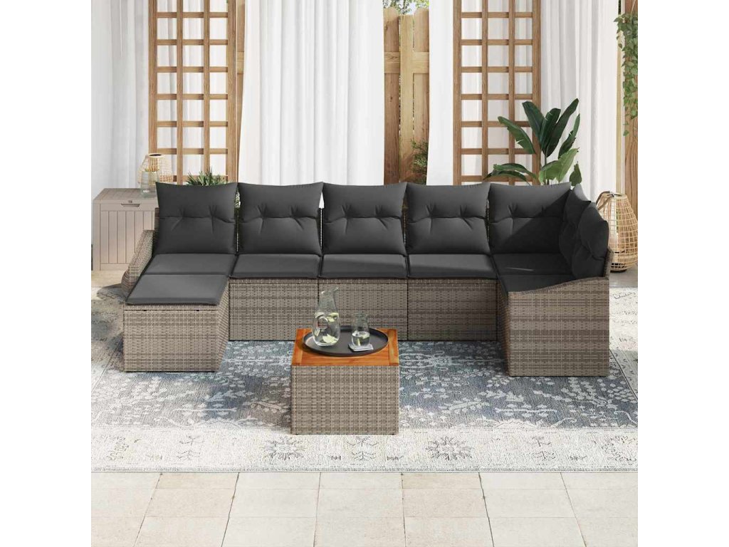 Sada zahradních pohovek s polštářem 8 pcs Šedá Poly ratan 3347860