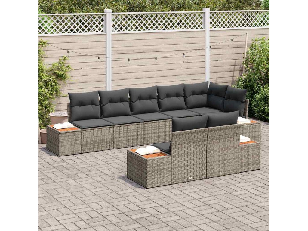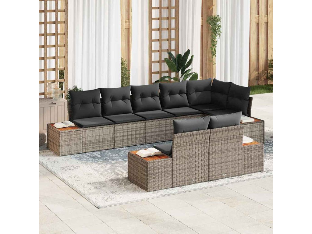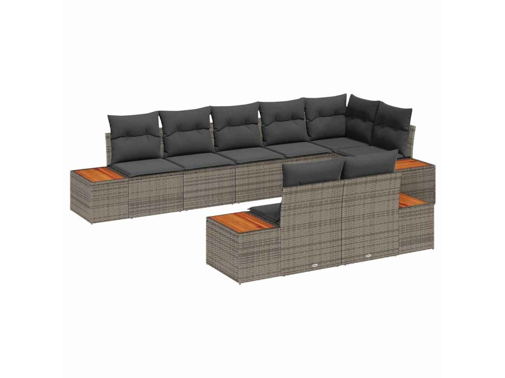 Sada zahradních pohovek s polštářem 8 pcs Šedá Poly ratan 3348110
