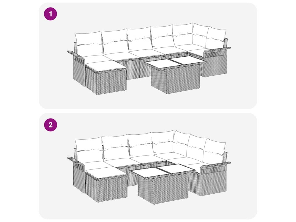 - Funkční prvky: Má rohové sedadlo, centrální sedadla, pohovky s opěrkami, taburet a stůl, takže je ideální pro flexibilní sezení venku. Můžete snadno přesunout nebo přizpůsobit každý kus a všechno se skládá na vaše venkovní akce nebo relaxační odpoledne.