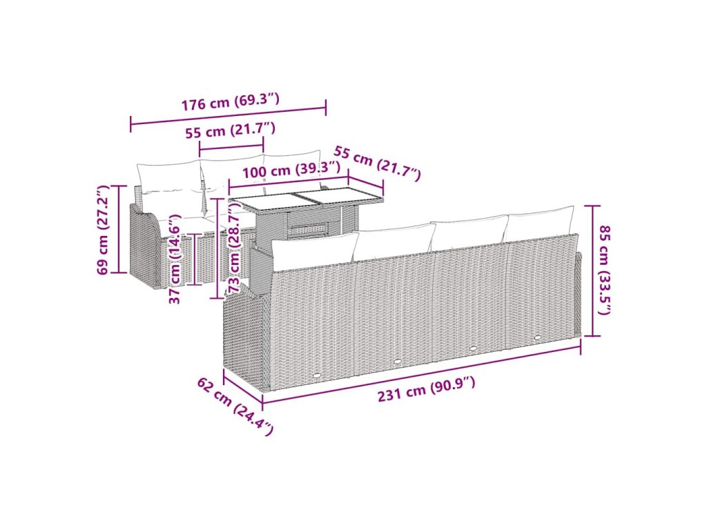 - Doporučené použití: Ideální na jaro a léto, super na zahrady a terasy. Uložíte si místa pro neformální konverzace, večeře pod hvězdami nebo jako sluneční koutek na čtení. Tento zahradní pohovkový set se hladce přizpůsobí různým aktivitám.