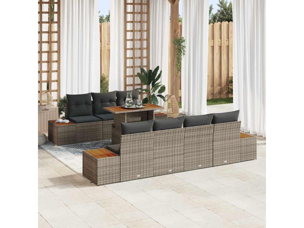 Sada zahradních pohovek s polštářem 8 pcs Šedá Poly ratan 3350041