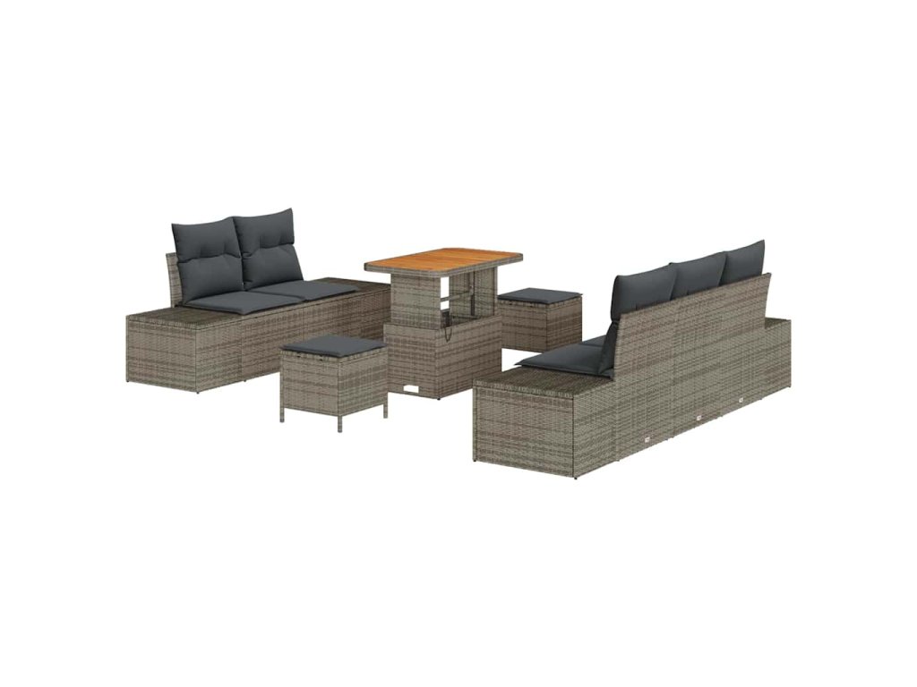 Sada zahradních pohovek s polštářem 8 pcs Šedá Poly ratan 3364683