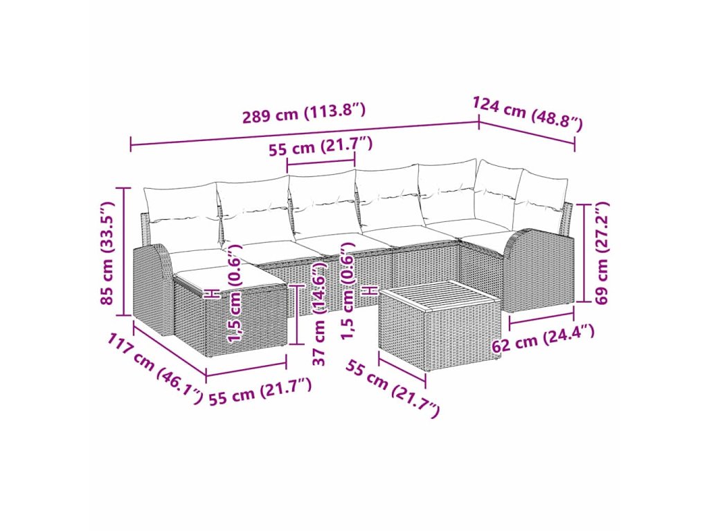 Sada zahradních pohovek s polštářem 8 pcs Šedá polyratan 3347608