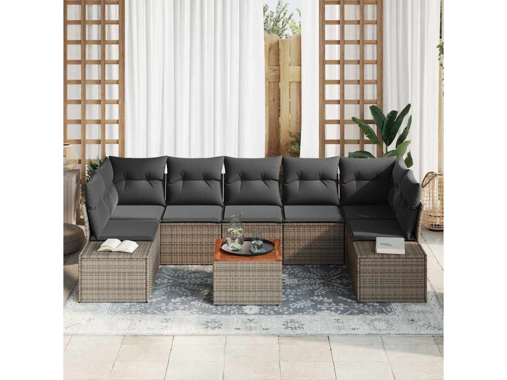 Sada zahradních pohovek s polštářem 8 pcs Šedá polyratan 3347923