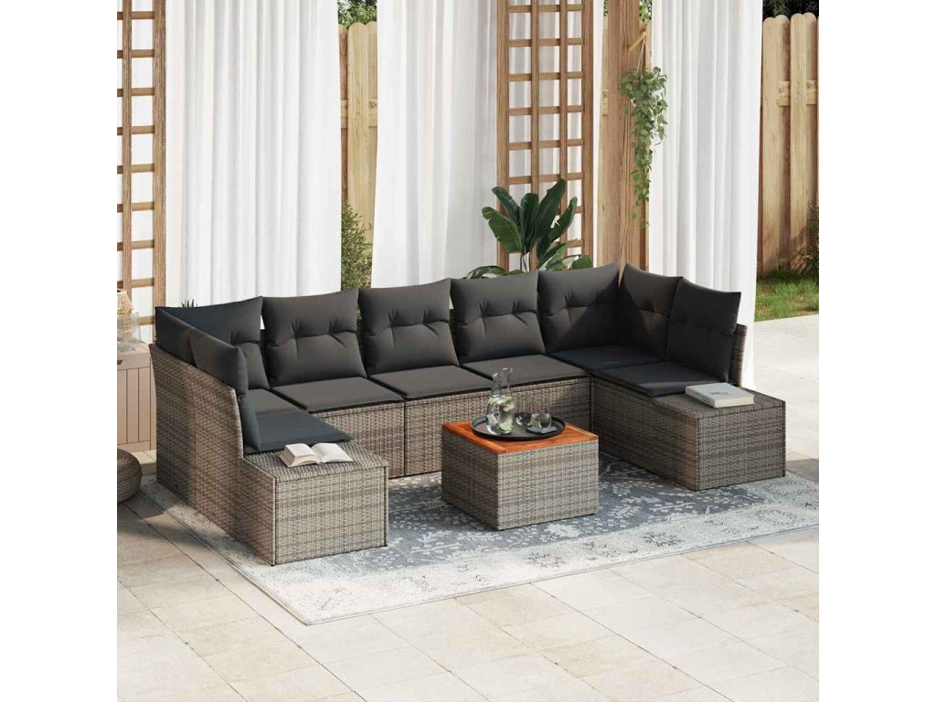 - Materiály odolné vůči povětrnostním vlivům: Navržený tak, aby odolal dešti, slunce a různým klimatickým podmínkám, pohovkový set zaručuje dlouhou životnost. Poly ratan dodává robustnost, zatímco akáciové dřevo přidává přírodní nádech.