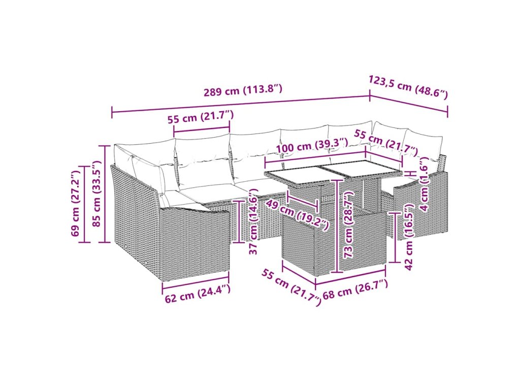 Tato moderní zahradní pohovková sada spojuje minimalistický design a všestrannost, ideální pro relaxaci i zábavu venku. Je navržena tak, aby se hodila do vaší zahrady nebo na terasu, a umožňuje vám uspořádat si prostor dle libosti. Čisté linie a moderní vzhled dodají šmrnc každému venkovnímu prostoru. Ať už pořádáte večírek nebo relaxujete s rodinou, tento set vám slibuje pohodlí a styl.