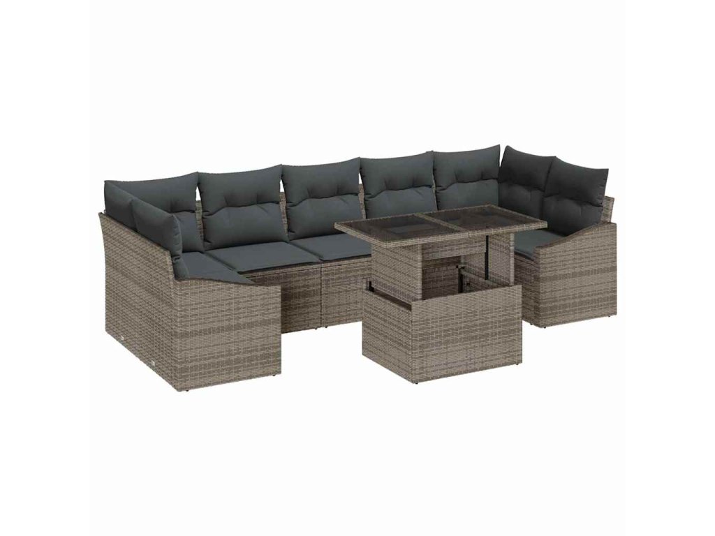 Sada zahradních pohovek s polštářem 8 pcs Šedá polyratan 3348955