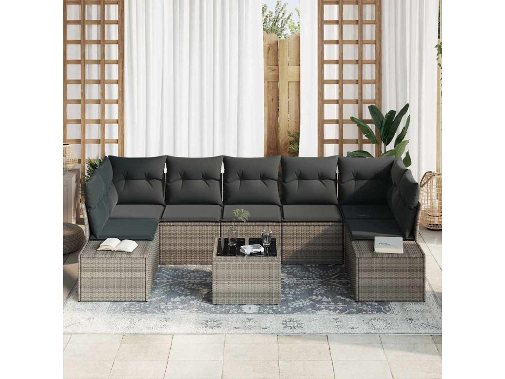 Sada zahradních pohovek s polštářem 8 pcs Šedá polyratan 3355648