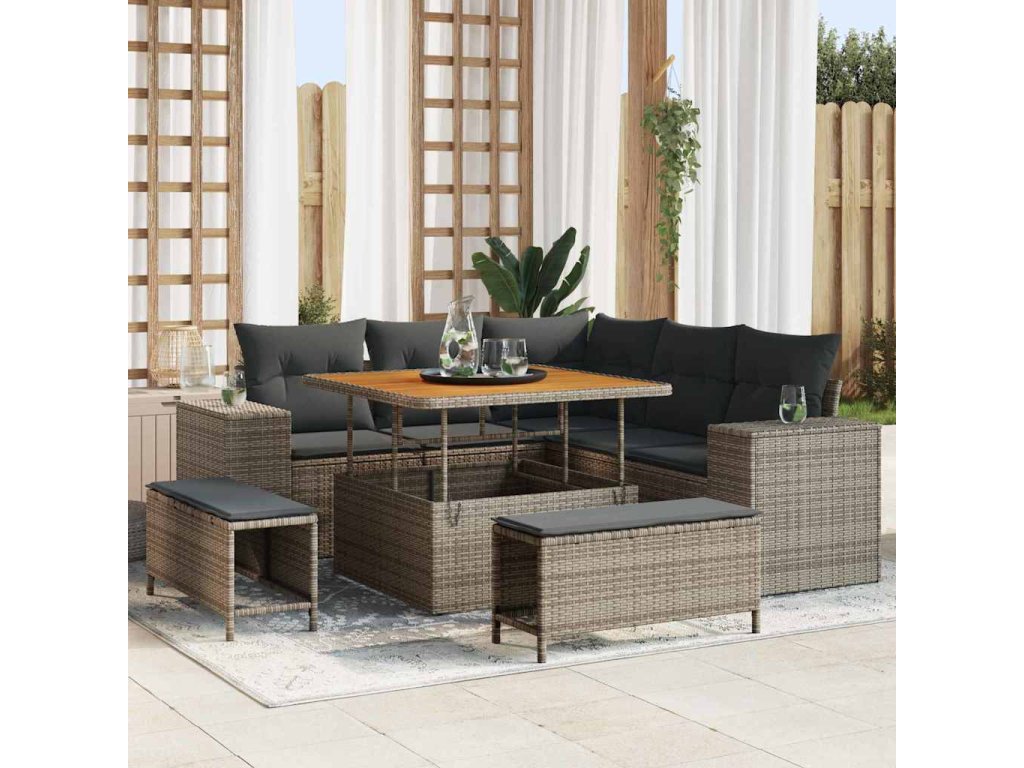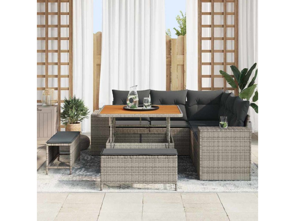- Kvalitní materiály: Vyrobený z masivního akáciového dřeva a poly ratanu, tenhle pohovkový set je odolný a stylový. Silné akáciové dřevo a weatherproof poly ratan se postará o to, že set zůstane krásný a zapadne do každé sezóny.