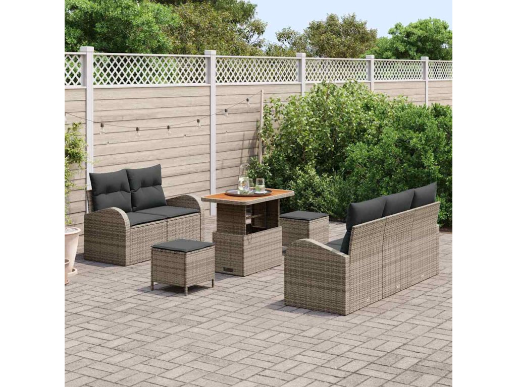 Sada zahradních pohovek s polštářem 8 pcs Šedá polyratan 3362343