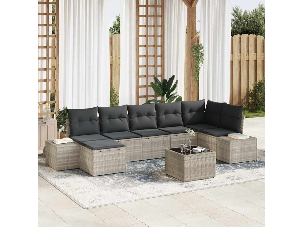 Sada zahradních pohovek s polštářem 8 pcs Světle šedá polyratan 3347162