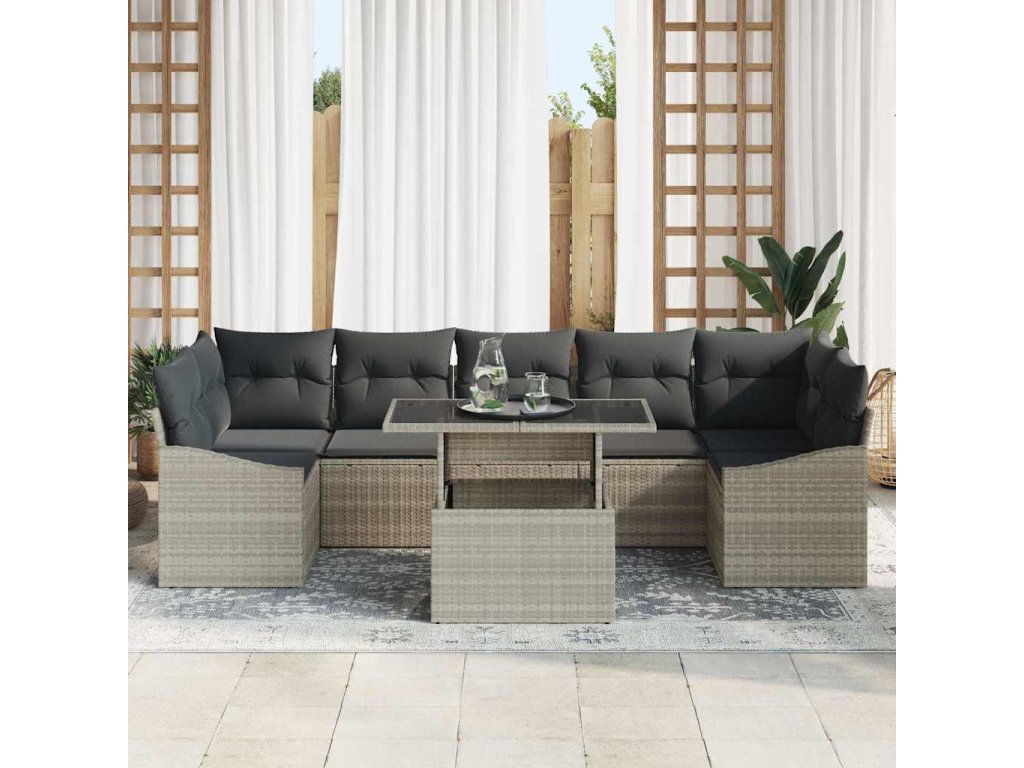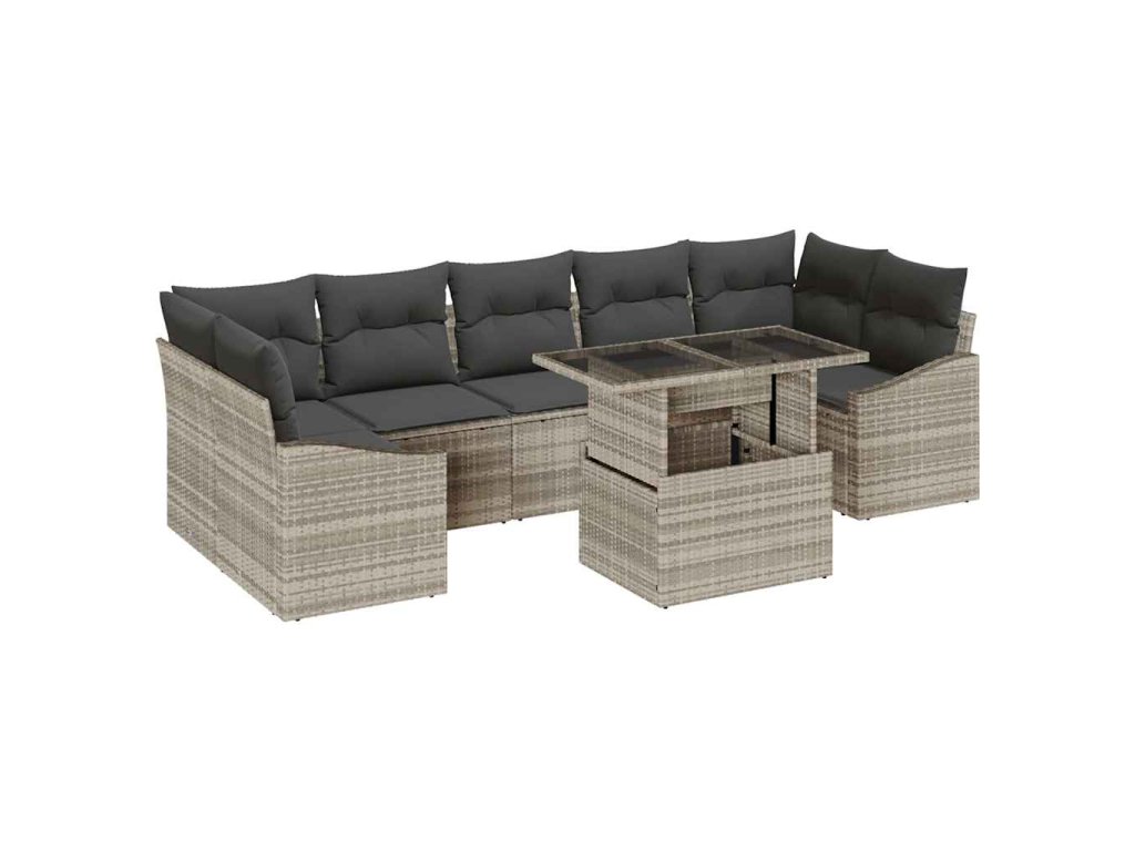 Sada zahradních pohovek s polštářem 8 pcs Světle šedá polyratan 3348958