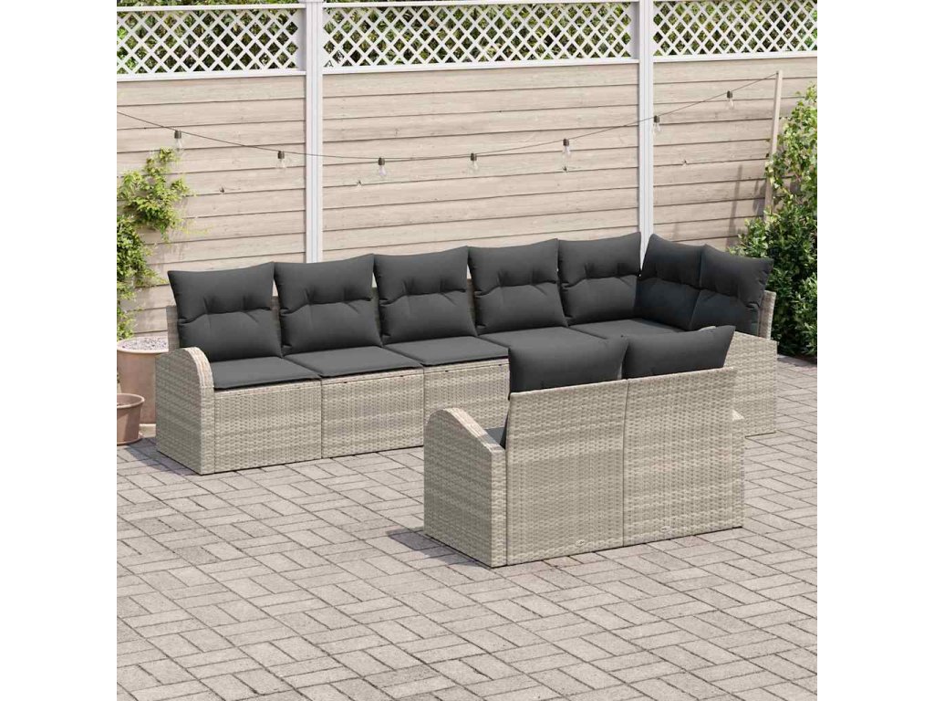 Sada zahradních pohovek s polštářem 8 pcs Světle šedá polyratan 3354761