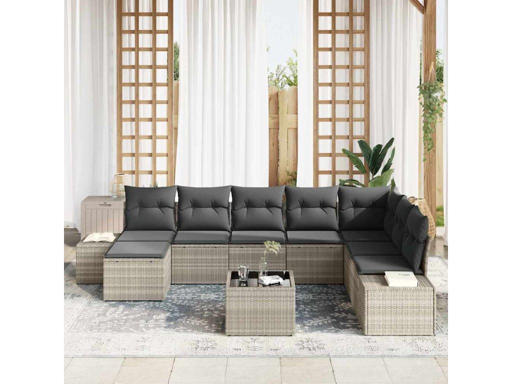 Sada zahradních pohovek s polštářem 8 pcs Světle šedá polyratan 3355861