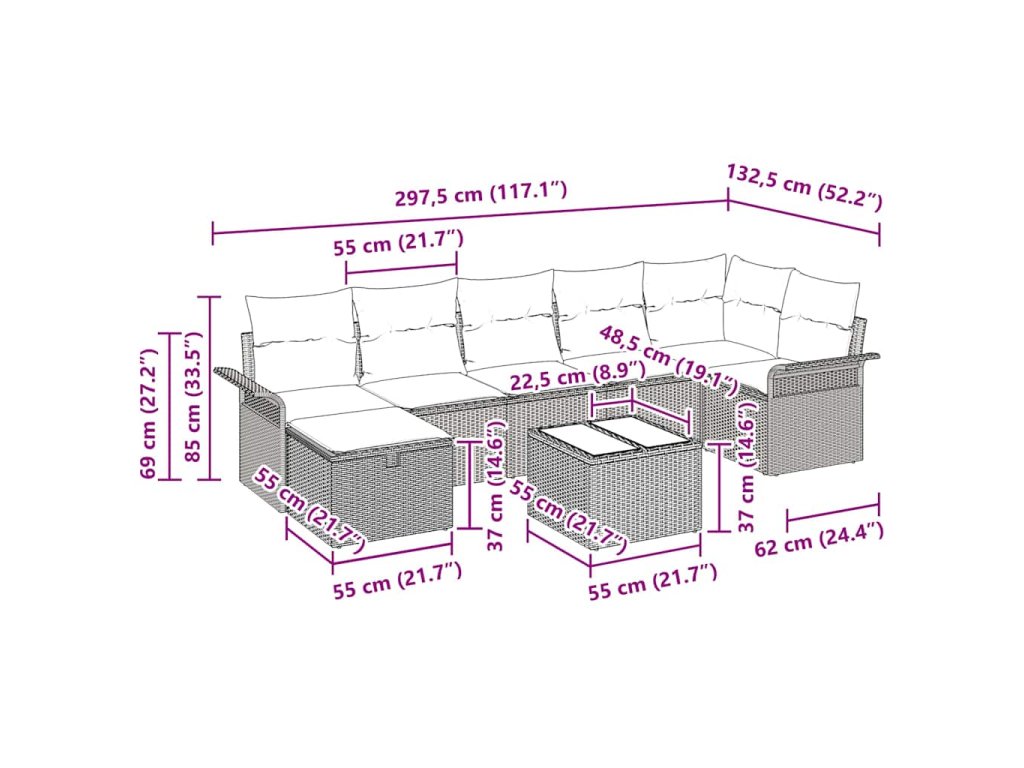 - Celkové rozměry: 297,5 x 132,5 x 85 cm (D x Š x V)