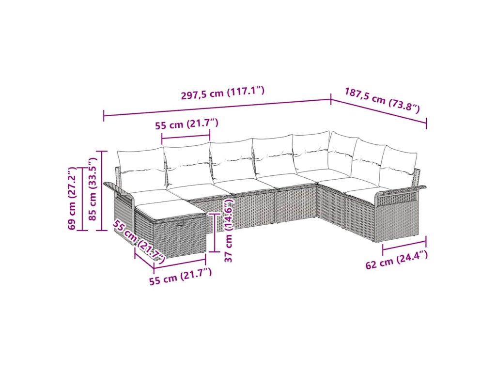 Sada zahradních pohovek s polštářem 8 pcs Světle šedá polyratan 3358931