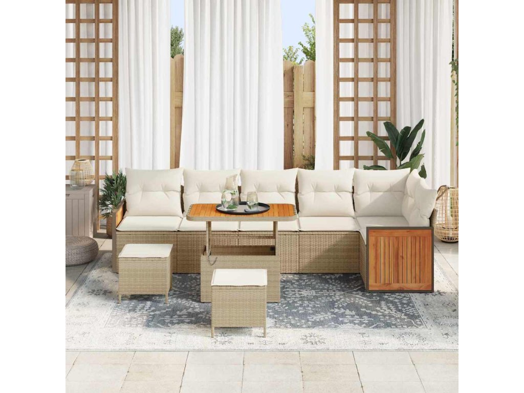 Tento moderní zahradní pohovkový set je ideální pro terasy a zahrady a spojí elegantní jednoduchost s užitečným designem. Je vyrobený s čistými liniemi a bez zbytečných ozdob, takže se parádně hodí do moderních venkovních prostor. Díky přizpůsobitelným funkcím, jako je stůl s nastavitelnou výškou, můžeš svobodně měnit mezi neformálním stolováním a pohodlným odpočinkem – je to ideální místo na setkání nebo klidné útočiště pod širým nebem.