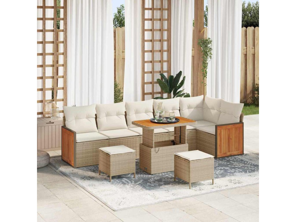 Sada zahradních pohovek s polštářem 9 pcs béžová a krémová 3363326