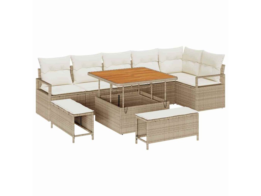 Sada zahradních pohovek s polštářem 9 pcs Béžová a krémová 3364486