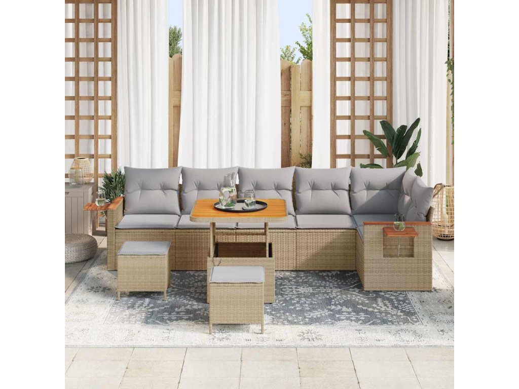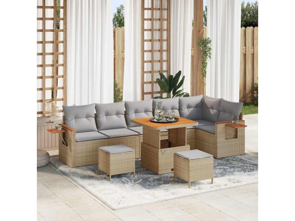 Sada zahradních pohovek s polštářem 9 pcs Béžová a Světle šedá 3363192