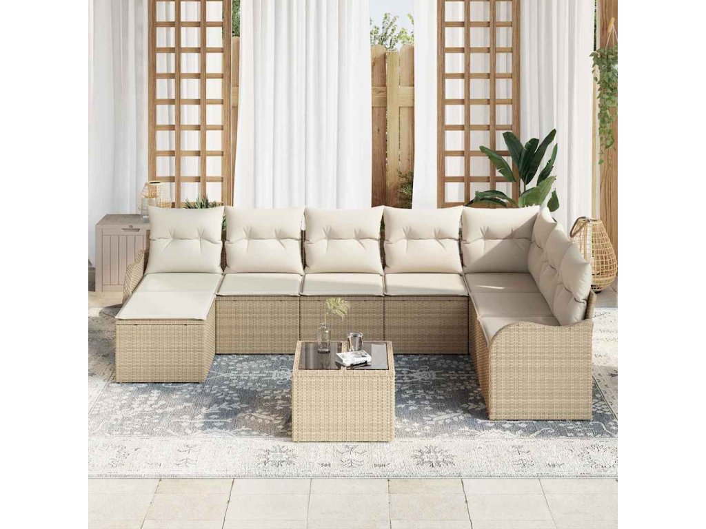 Sada zahradních pohovek s polštářem 9 pcs Béžová Poly ratan 3345831