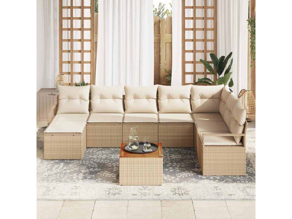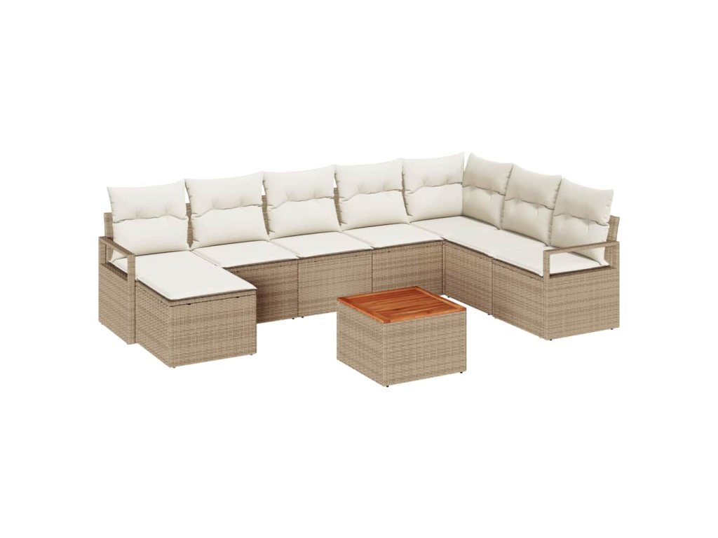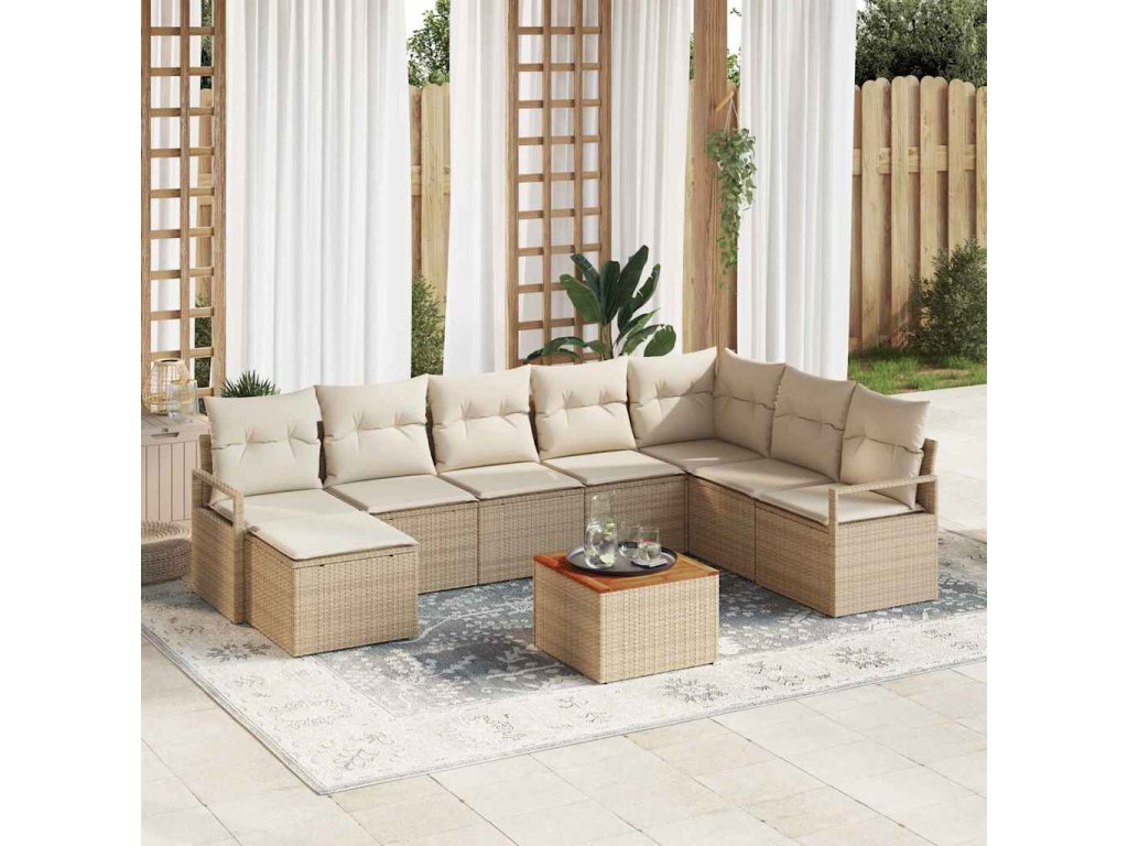 Sada zahradních pohovek s polštářem 9 pcs Béžová Poly ratan 3347743