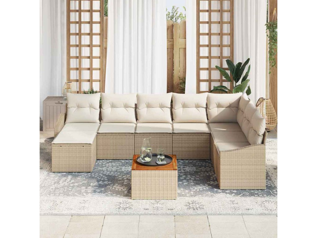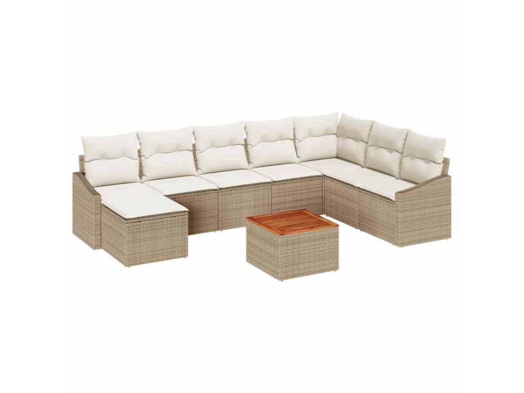 Sada zahradních pohovek s polštářem 9 pcs Béžová Poly ratan 3347869