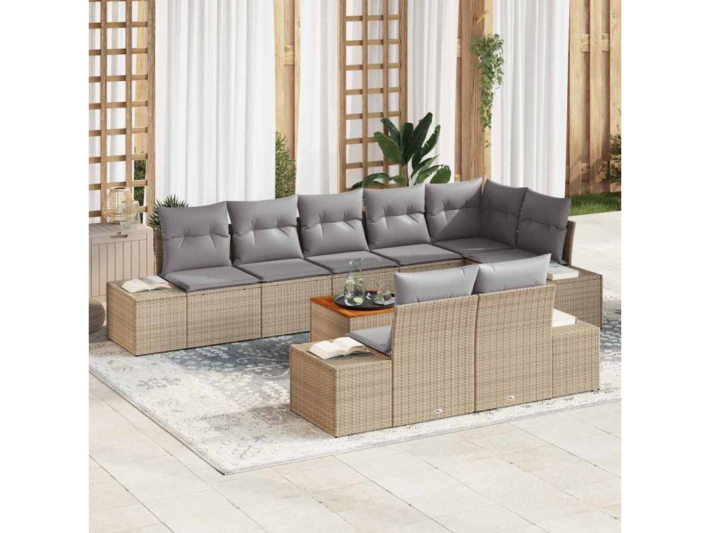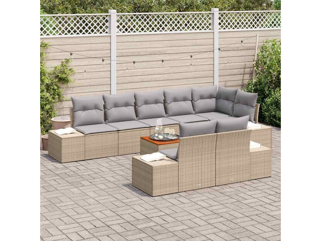 Sada zahradních pohovek s polštářem 9 pcs Béžová Poly ratan 3347973