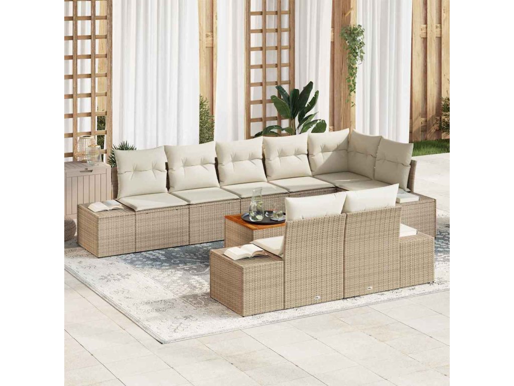 Sada zahradních pohovek s polštářem 9 pcs Béžová Poly ratan 3347974