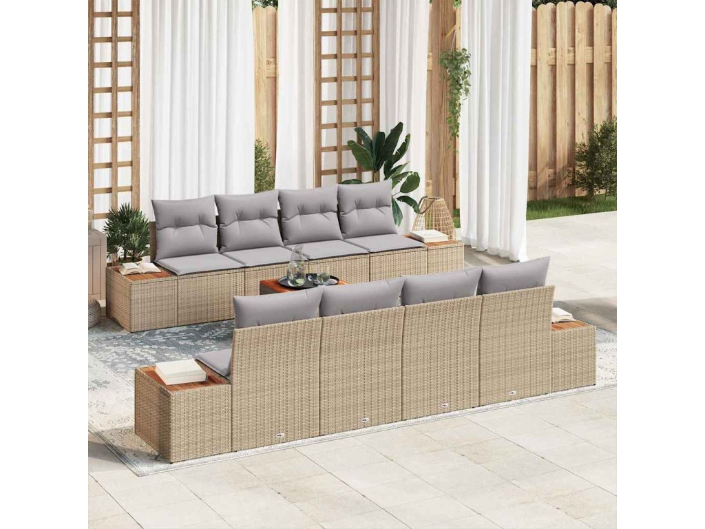 Sada zahradních pohovek s polštářem 9 pcs Béžová Poly ratan 3348051