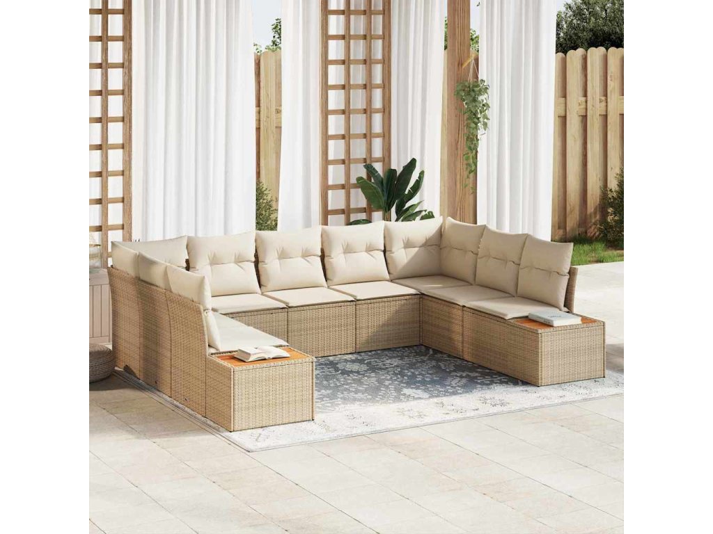Sada zahradních pohovek s polštářem 9 pcs Béžová Poly ratan 3348167