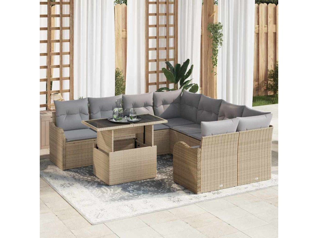 Sada zahradních pohovek s polštářem 9 pcs Béžová Poly ratan 3348436
