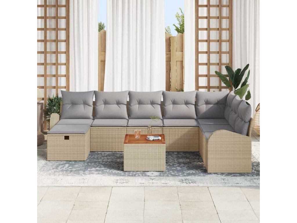 Sada zahradních pohovek s polštářem 9 pcs Béžová Poly ratan 3359525