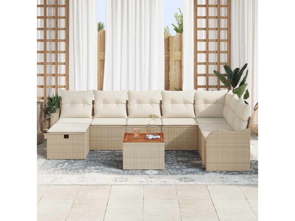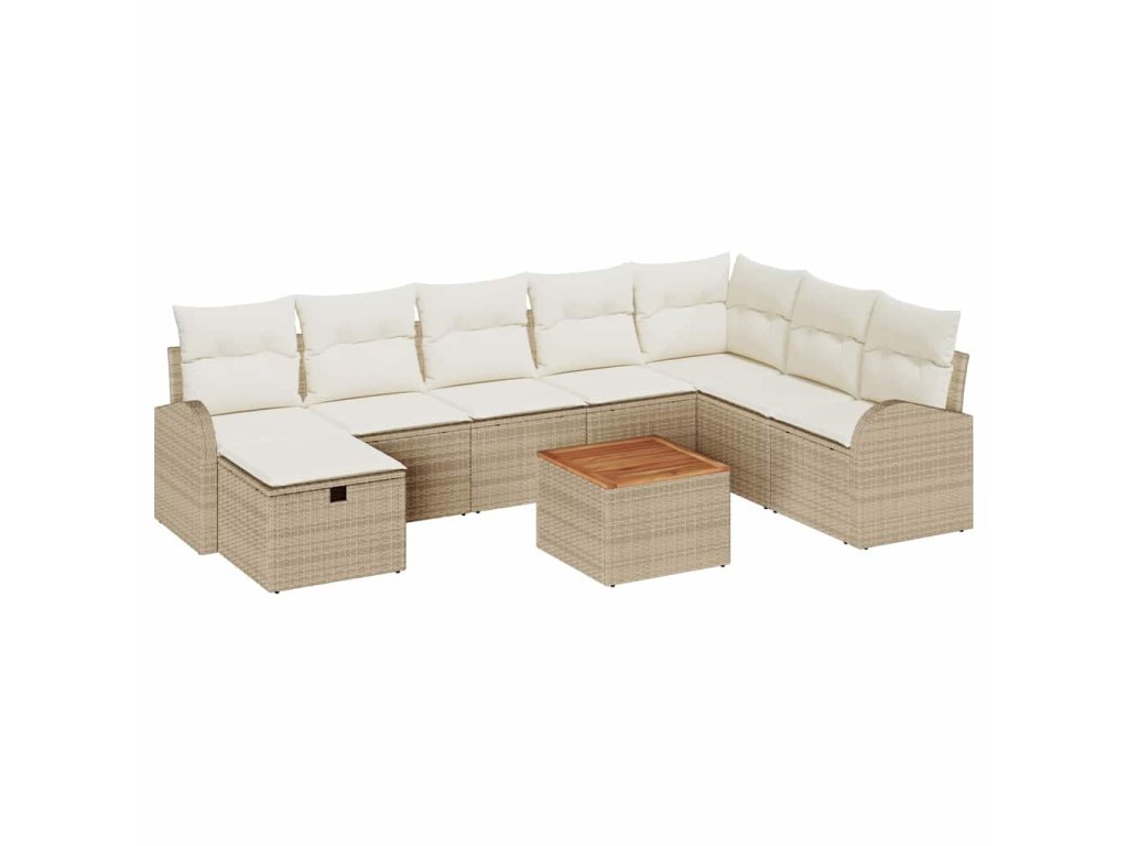 Sada zahradních pohovek s polštářem 9 pcs Béžová Poly ratan 3359526