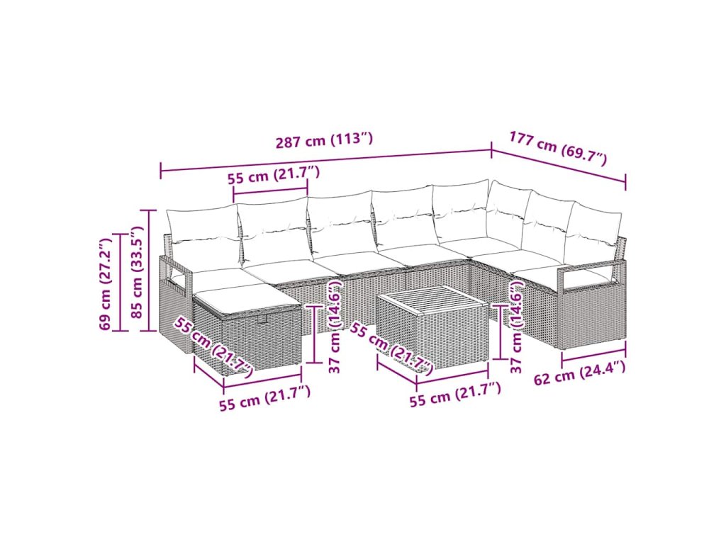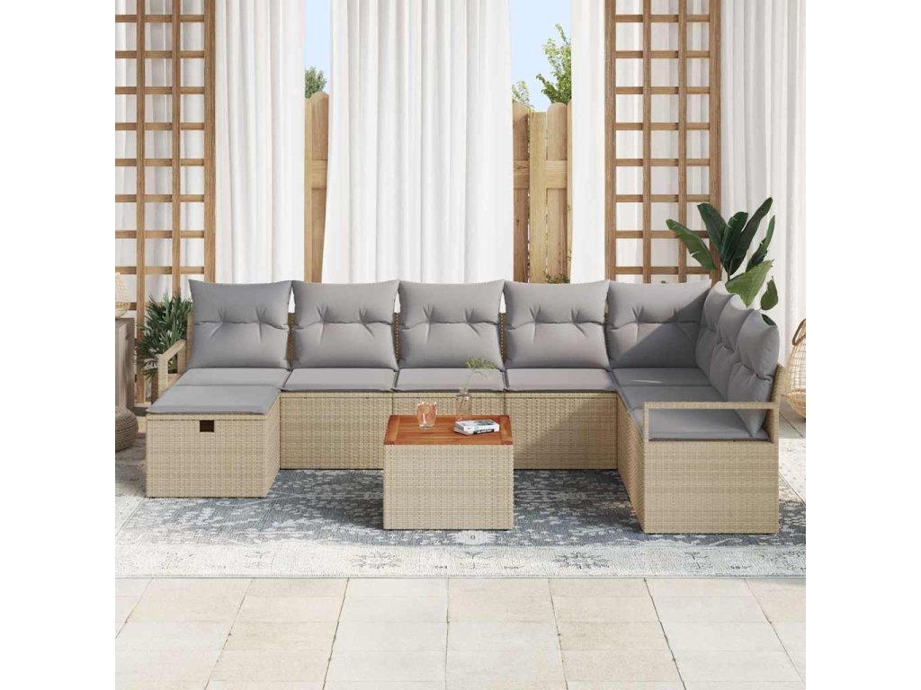 Sada zahradních pohovek s polštářem 9 pcs Béžová Poly ratan 3359553