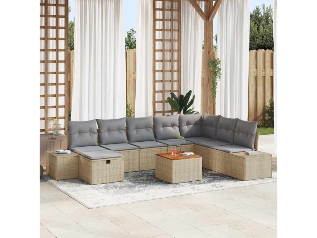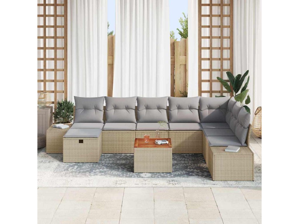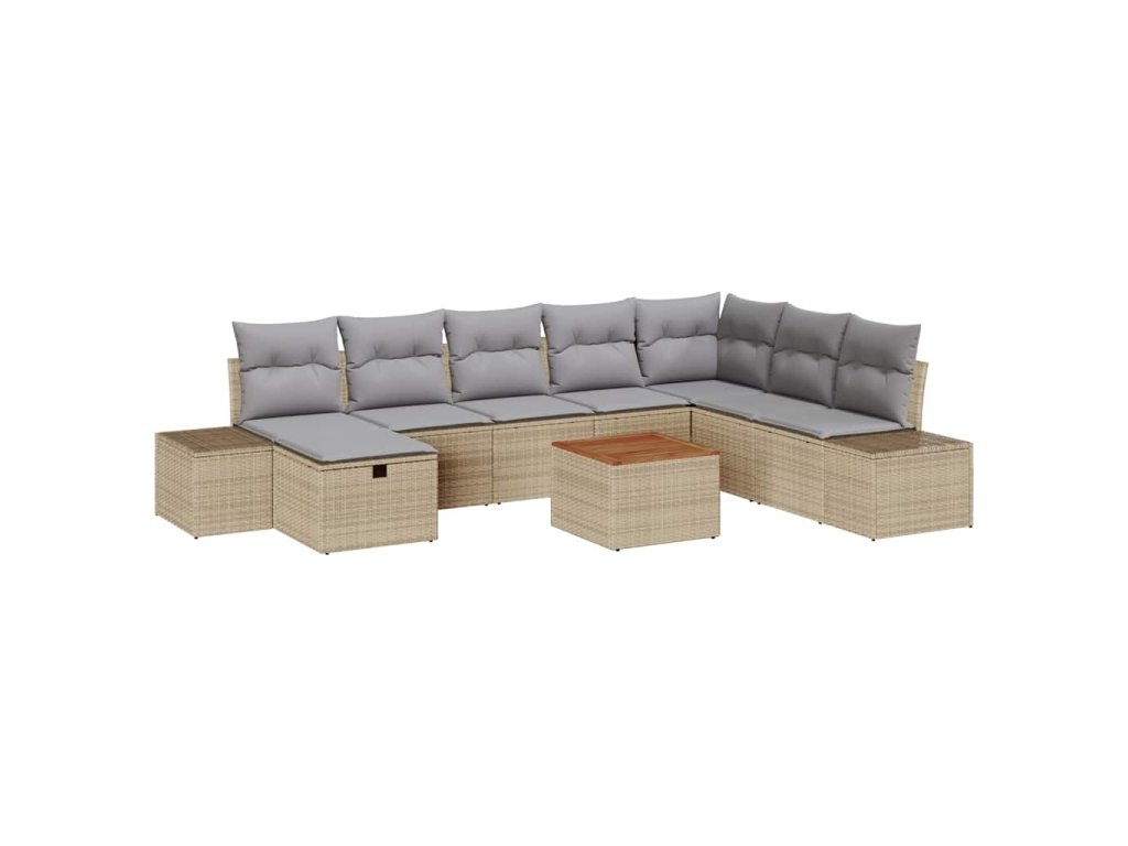 Sada zahradních pohovek s polštářem 9 pcs Béžová Poly ratan 3359609