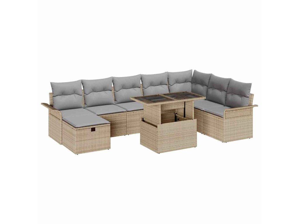 Sada zahradních pohovek s polštářem 9 pcs Béžová Poly ratan 3359697