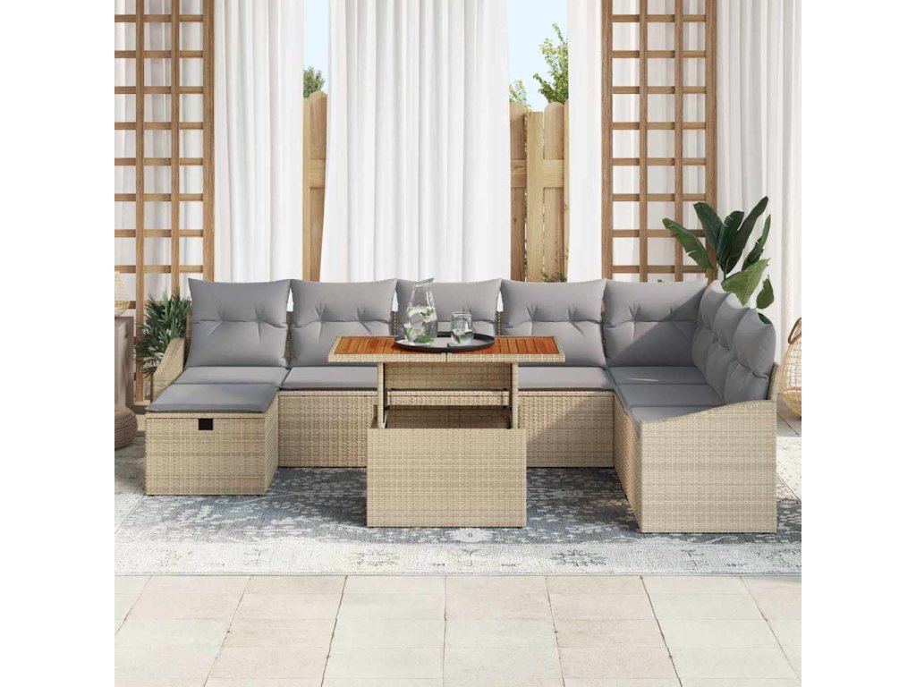 Sada zahradních pohovek s polštářem 9 pcs Béžová Poly ratan 3360039