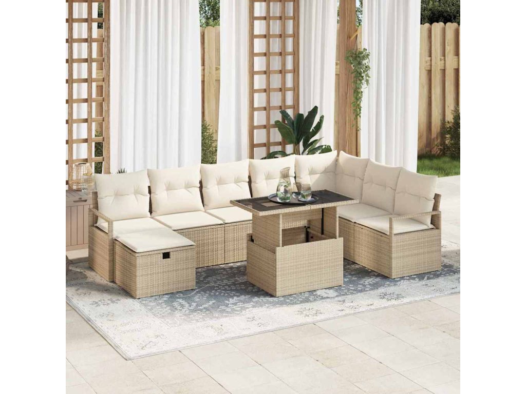 Sada zahradních pohovek s polštářem 9 pcs Béžová Poly ratan 3361150
