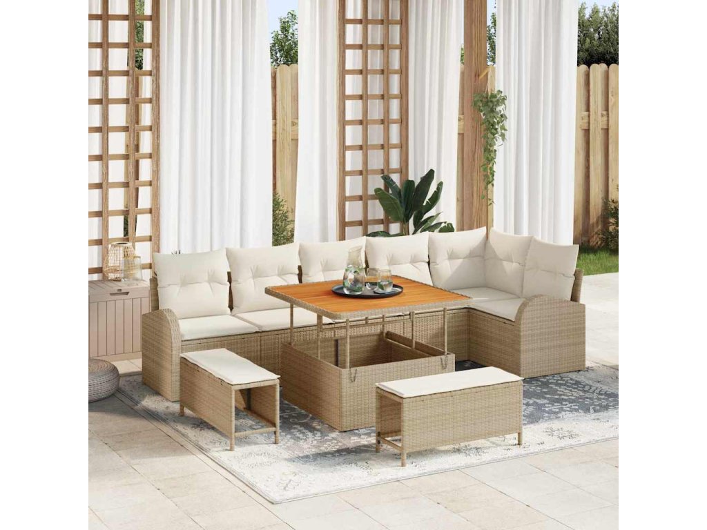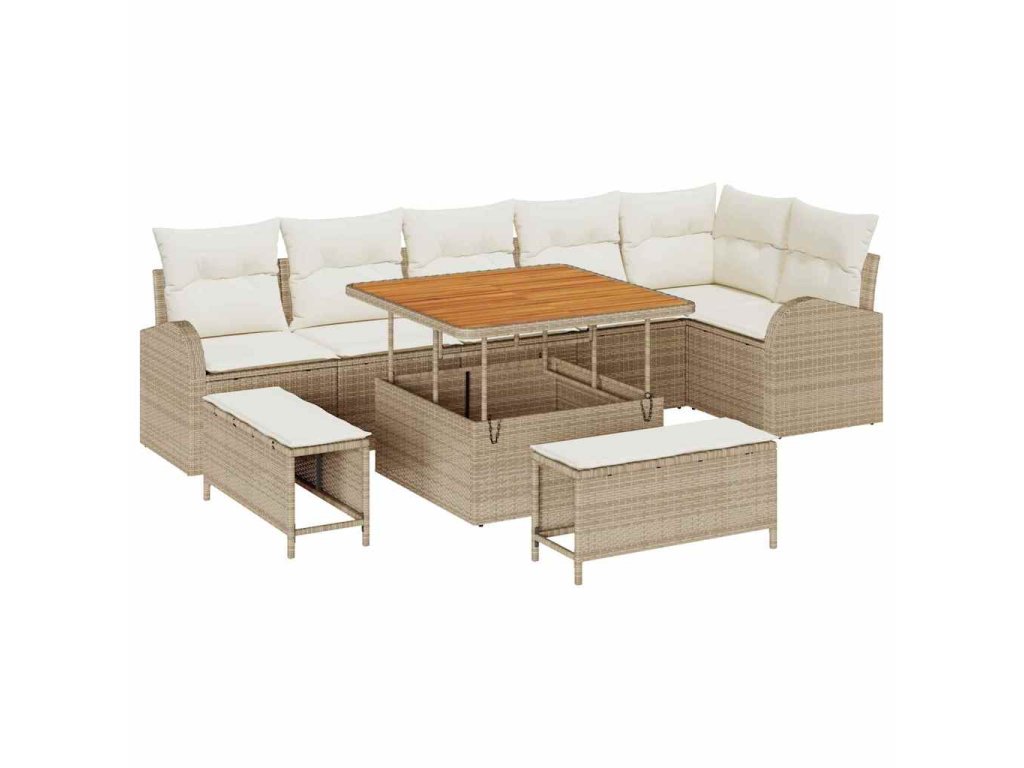 Sada zahradních pohovek s polštářem 9 pcs Béžová Poly ratan 3362406