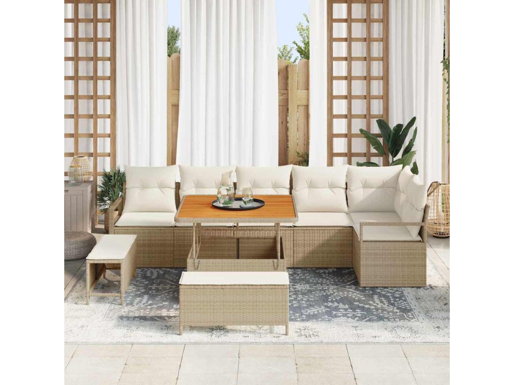 Sada zahradních pohovek s polštářem 9 pcs Béžová Poly ratan 3362536