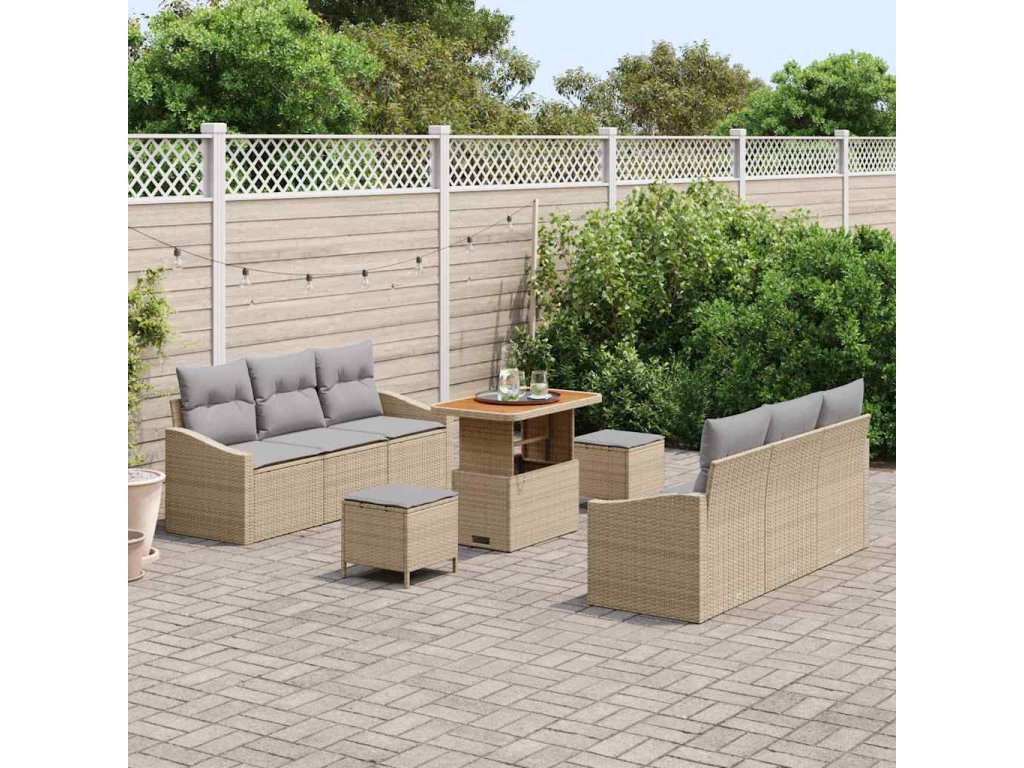 Sada zahradních pohovek s polštářem 9 pcs Béžová Poly ratan 3362612