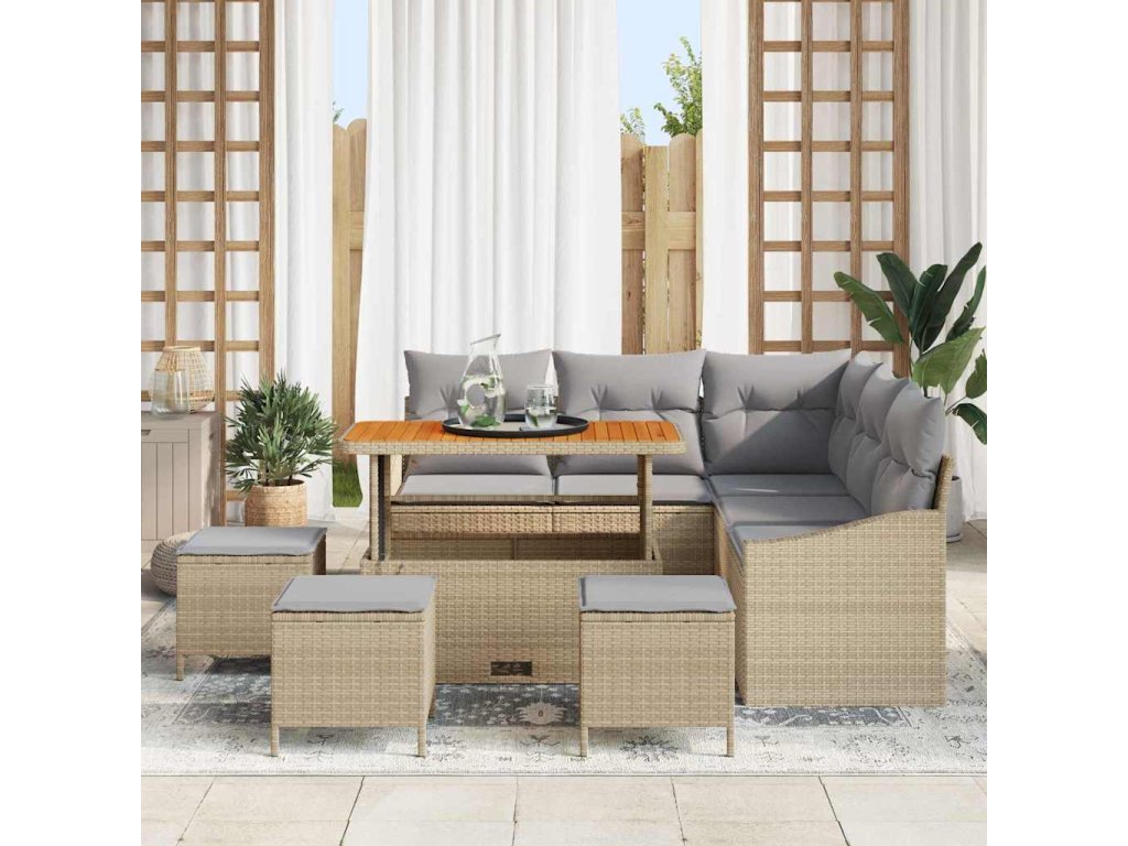 Sada zahradních pohovek s polštářem 9 pcs Béžová Poly ratan 3362662