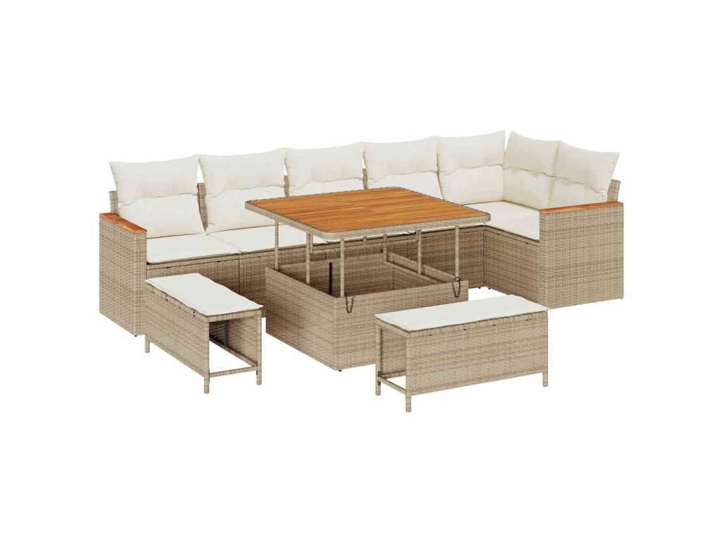 Sada zahradních pohovek s polštářem 9 pcs Béžová Poly ratan 3365006