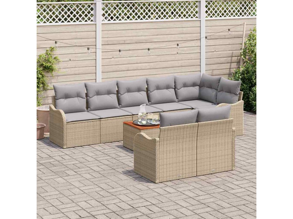 Sada zahradních pohovek s polštářem 9 pcs Béžová polyratan 3347469