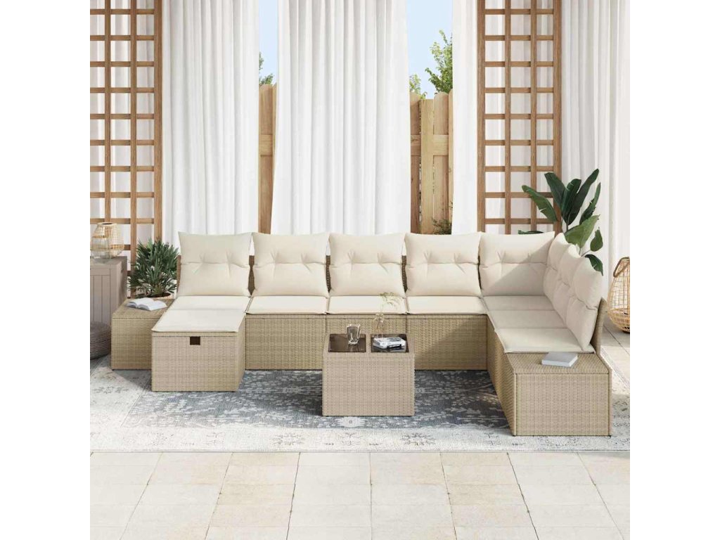 Sada zahradních pohovek s polštářem 9 pcs Béžová polyratan 3359440