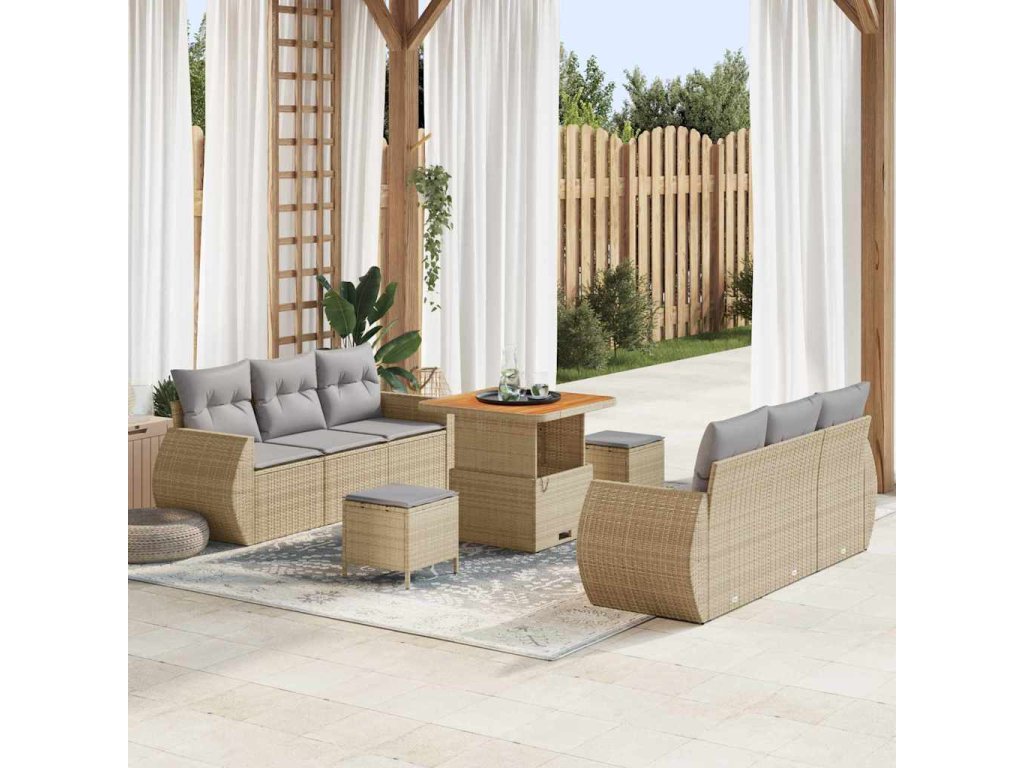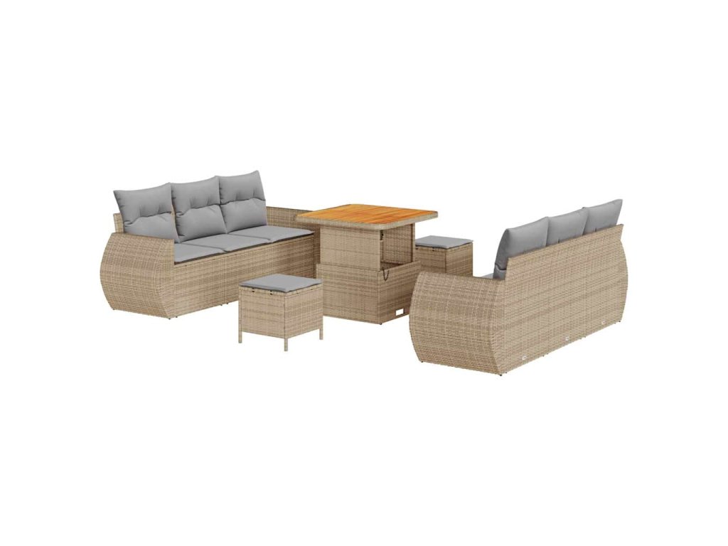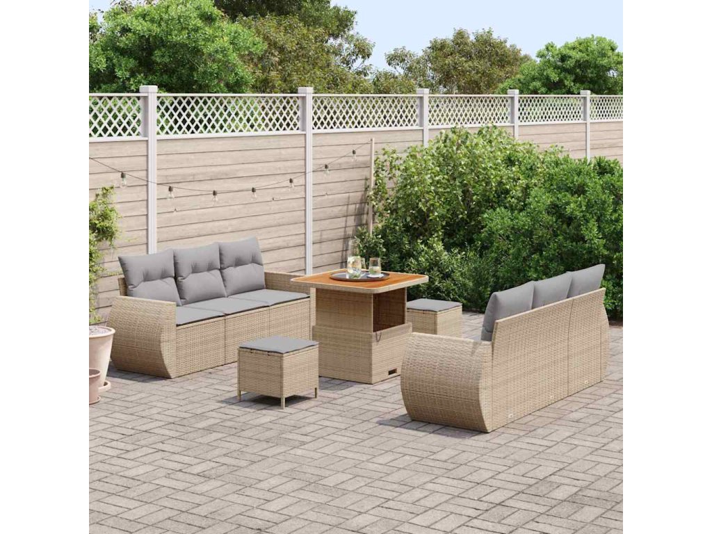 Sada zahradních pohovek s polštářem 9 pcs Béžová polyratan 3361827