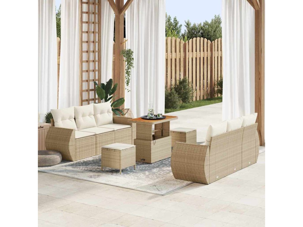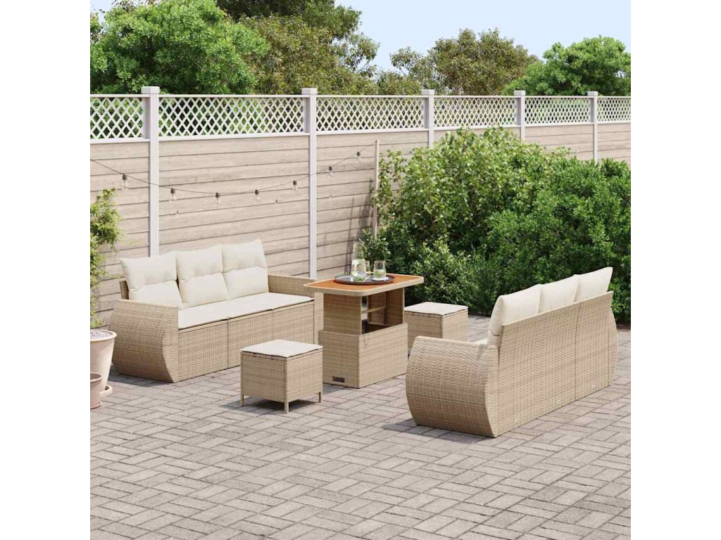 Sada zahradních pohovek s polštářem 9 pcs Béžová polyratan 3361831
