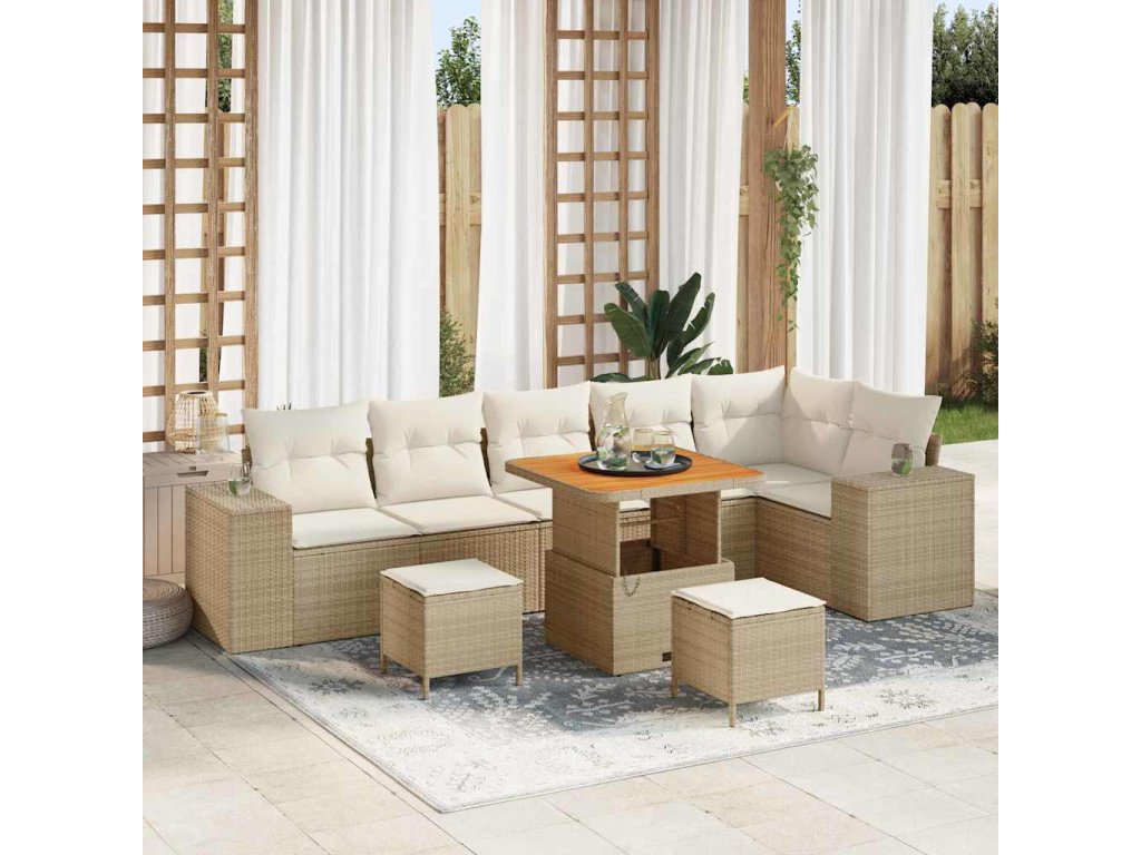 Sada zahradních pohovek s polštářem 9 pcs Béžová polyratan 3362021